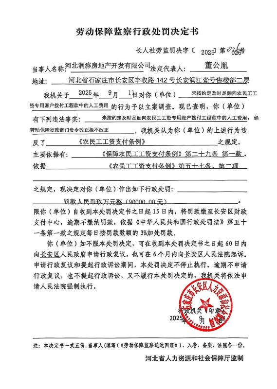 河北润滹房地产开发有限公司未按约定及时足额向农民工工资专用账户拨付工程款中的人工费用案