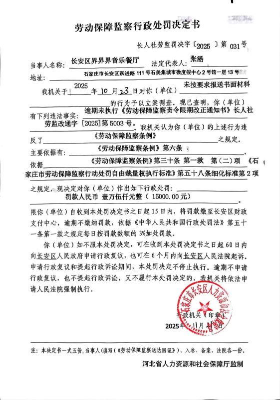 长安区界界界音乐餐厅未按要求报送书面材料案