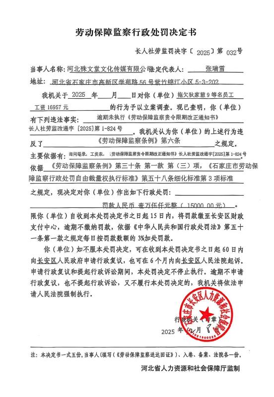 河北殊文堂文化传媒有限公司拖欠员工工资案