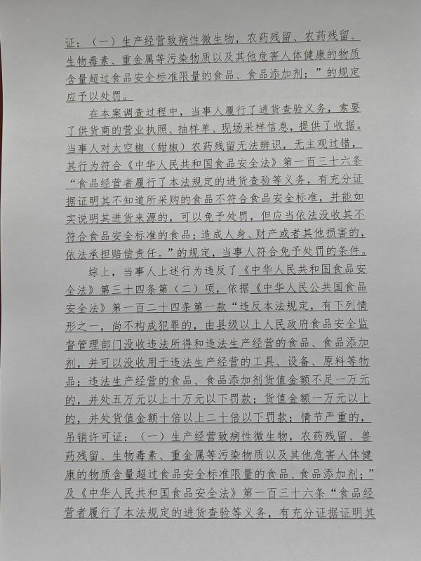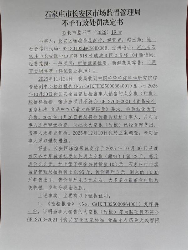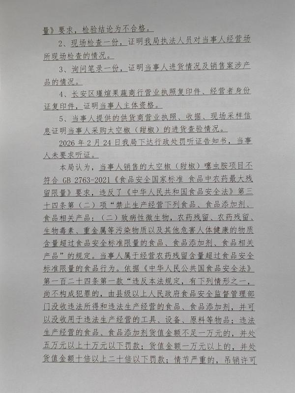 长安区瑾煊果蔬商行(赵玉茹)销售不合格太空椒(甜椒)案