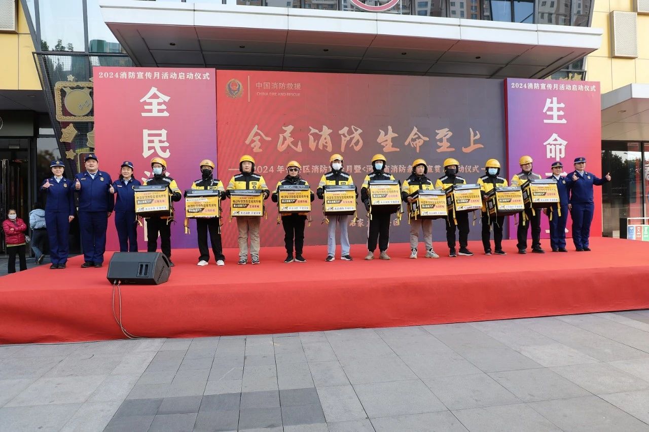 启动仪式上,长安区政府副区长张俊立为本次活动致辞。并强调,社会各界要大力宣传普及消防安全常识,自觉遵守消防法律法规,推扎实开展《河北省消防条例》宣贯工作,积极参与消防、支持消防,努力构建“政府统一领导、部门依法监督、单位全面负责、公民积极参与”的良好消防工作格局。随后,长安区消防救援大队指战员依次将电动车、生命通道等消防宣传月活动标语张贴至美团骑手配送箱上,充分发挥“点多面广”的优势,切实使美团骑手成为一支具有普及消防常识、扑救初期火灾等多种能力的消防安全“护卫队”。