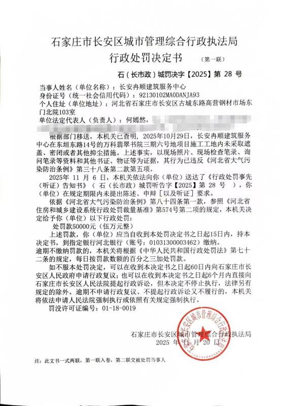2025年10月29日,长安冉顺建筑服务中心在东垣东路14号的万科翡翠书院三期六号地项目施工工地内未采取遮盖、密闭或者其他抑尘措施 | ||