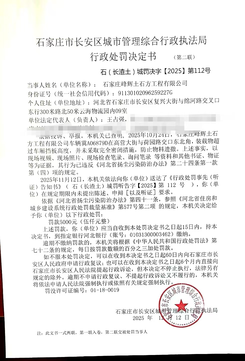 石(长渣土)城罚决字【2025】第112号 | ||