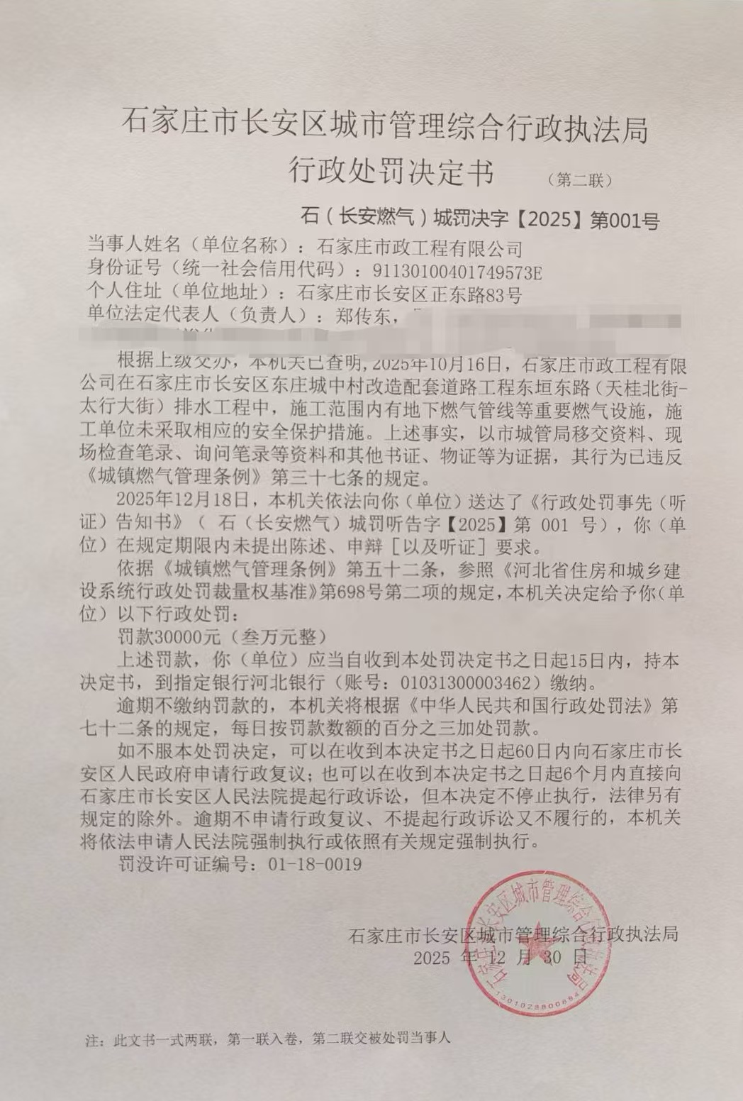 石(长安燃气)城罚决字【2025】第001号 | ||