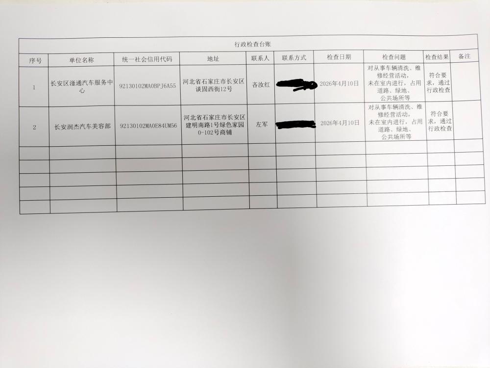 2026年行政检查台账