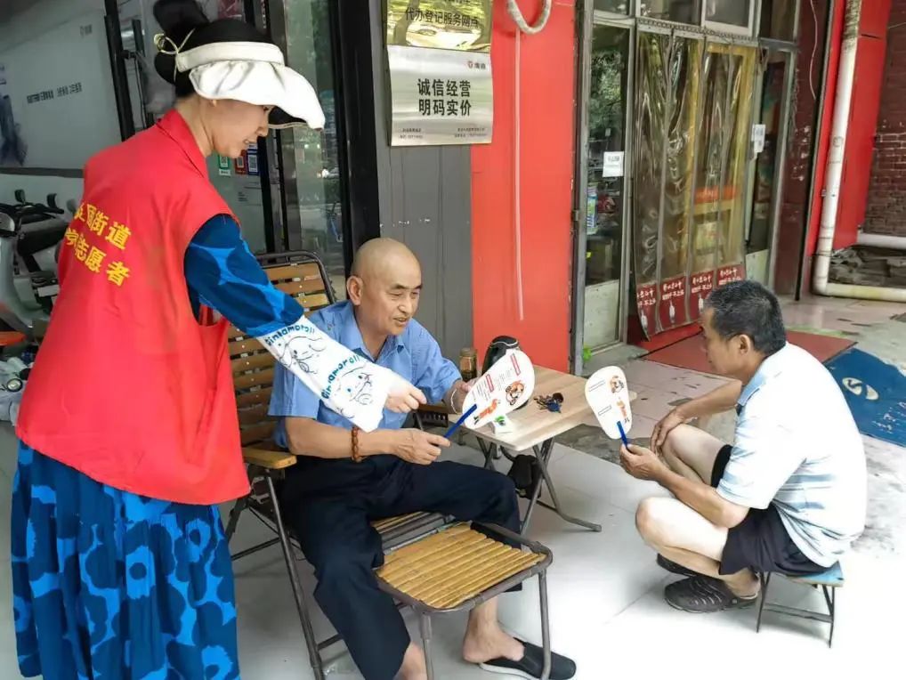 巾帼志愿者给社区居民、辖区商户发放消防安全宣传页,家庭消防急救常识小扇子,检查居民住宅高层、辖区商户消防栓是否完善,消防措施是否能正常使用,并宣传消防安全知识,提醒居民高温天气注意安全用火、用电、用气,厨房用火不离人,做好“三清三关”。