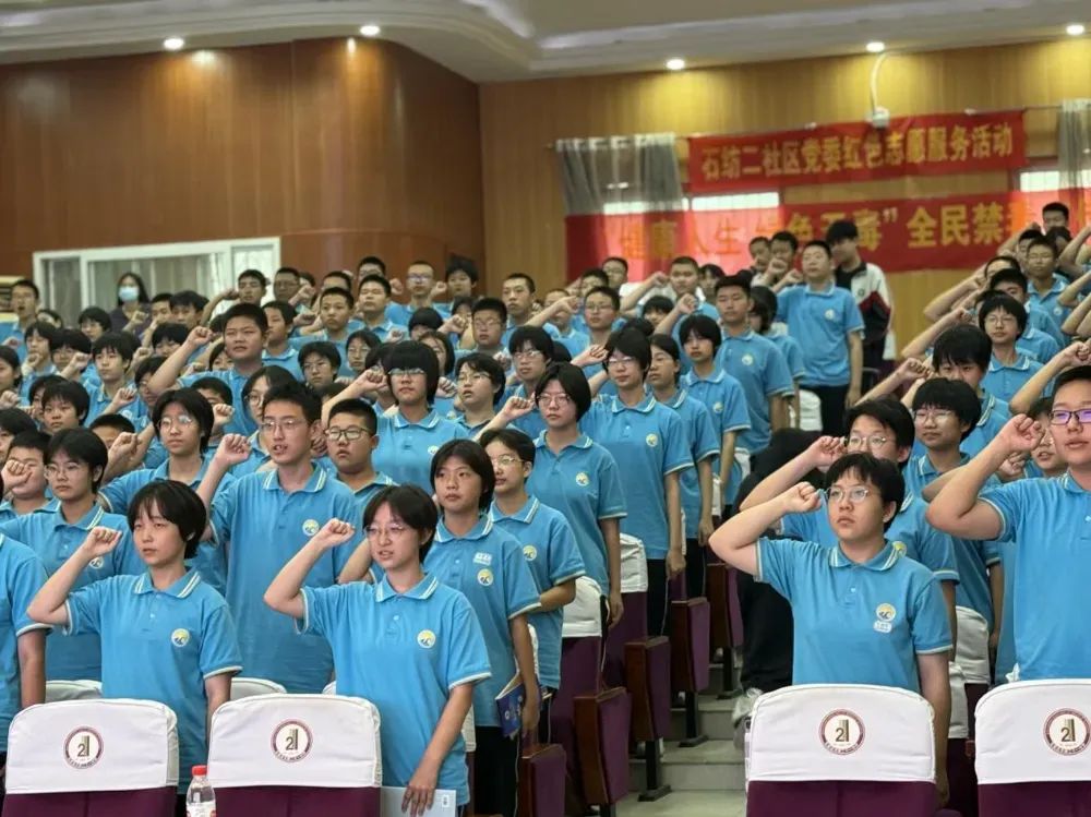 在国际禁毒日来临之际,胜北街道石纺二社区联合石家庄市第二强制隔离戒毒所走进石家庄市第89中学开展禁毒教育宣传活动。