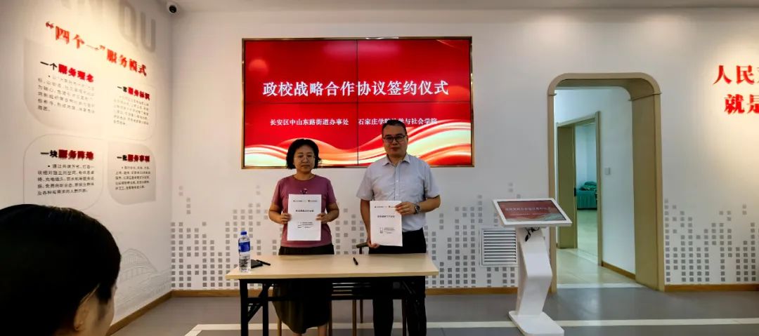 近日,石家庄市长安区中山东路街道办事处与石家庄学院法学与社会学院政校战略合作协议签约仪式在长安区新就业群体党群服务中心圆满举办。此次签约标志着双方在资源共享、人才培养、社会实践等多领域的深度合作正式拉开帷幕。