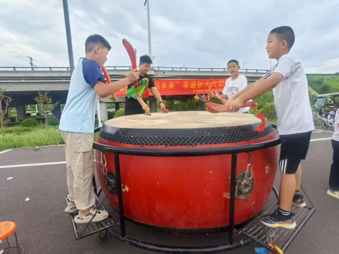 在老师的悉心指导下,学员们从基础握槌姿势到复杂节奏,一步步领略这门古老艺术的神韵。训练场上鼓声阵阵,少年们眼神专注,每一次落槌都迸发出蓬勃朝气。随着练习的深入,零散的鼓点渐渐汇成磅礴的韵律,古老的祈天大鼓在青春力量的演绎中焕发新生。
