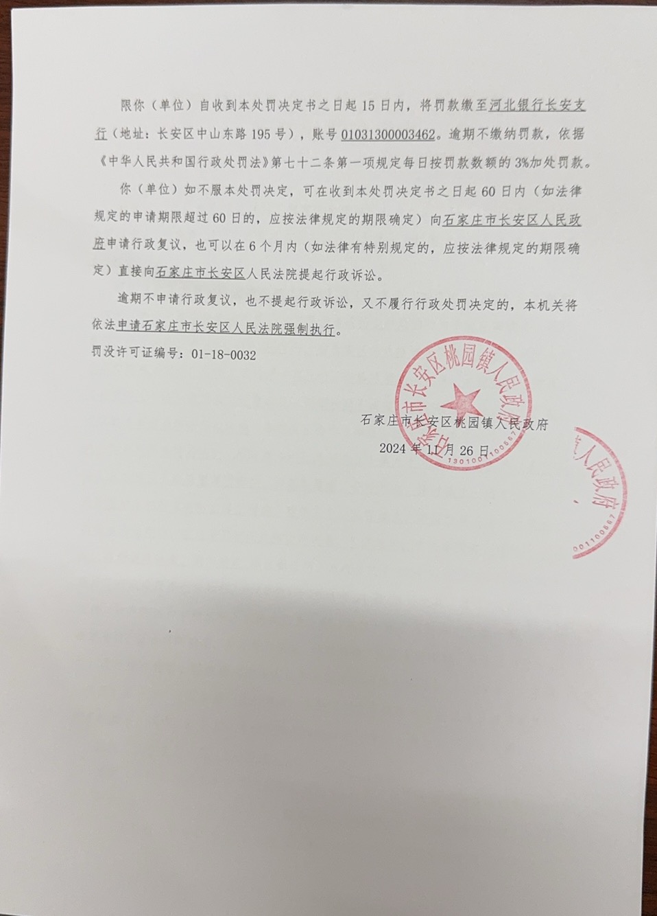 河北春和建筑装饰工程有限公司在长安区军地养生苑项目施工现场造成扬尘污染的行为予以立案调查。现已查明你单位在长安区志远路与祥华街交口西南角军地养老苑项目施工现场,正在土方回填,未采取湿法作业措施,大量渣土露天堆放未及时苫盖,部分裸地未采取苫盖抑尘措施,道路清扫冲洗不及时,积土较多,出口车辆冲洗机故障未使用,渣土车出门仅用水枪简单冲洗轮胎,车辆带泥上路明显,未采取有效措施防治扬尘污染。违反了《中华人民共和国大气污染防治法》(2018年修订本)第六十九条第三款的规定,依据《中华人民共和国大气污染防治法》(2018年修订本)第一百一十五条第一款的规定,参照《河北省住房和城乡建设系统行政处罚裁量权基准(试行)》第574号的规定,对当事公司作出责令限期整改、罚款壹万元整(10000元)的行政处罚,该当事公司已经限期整改,并在规定时间内向指定银行缴纳了罚款。