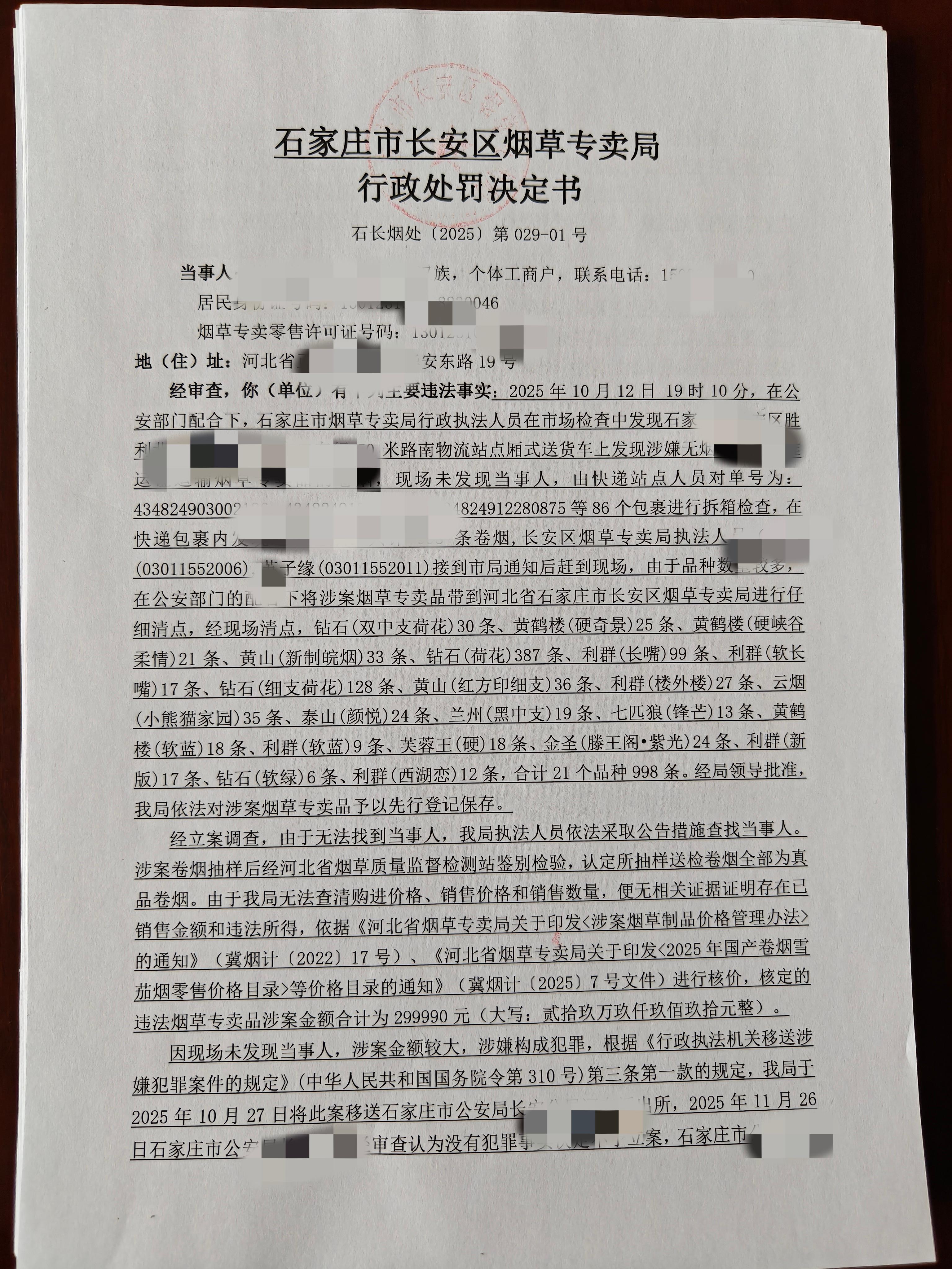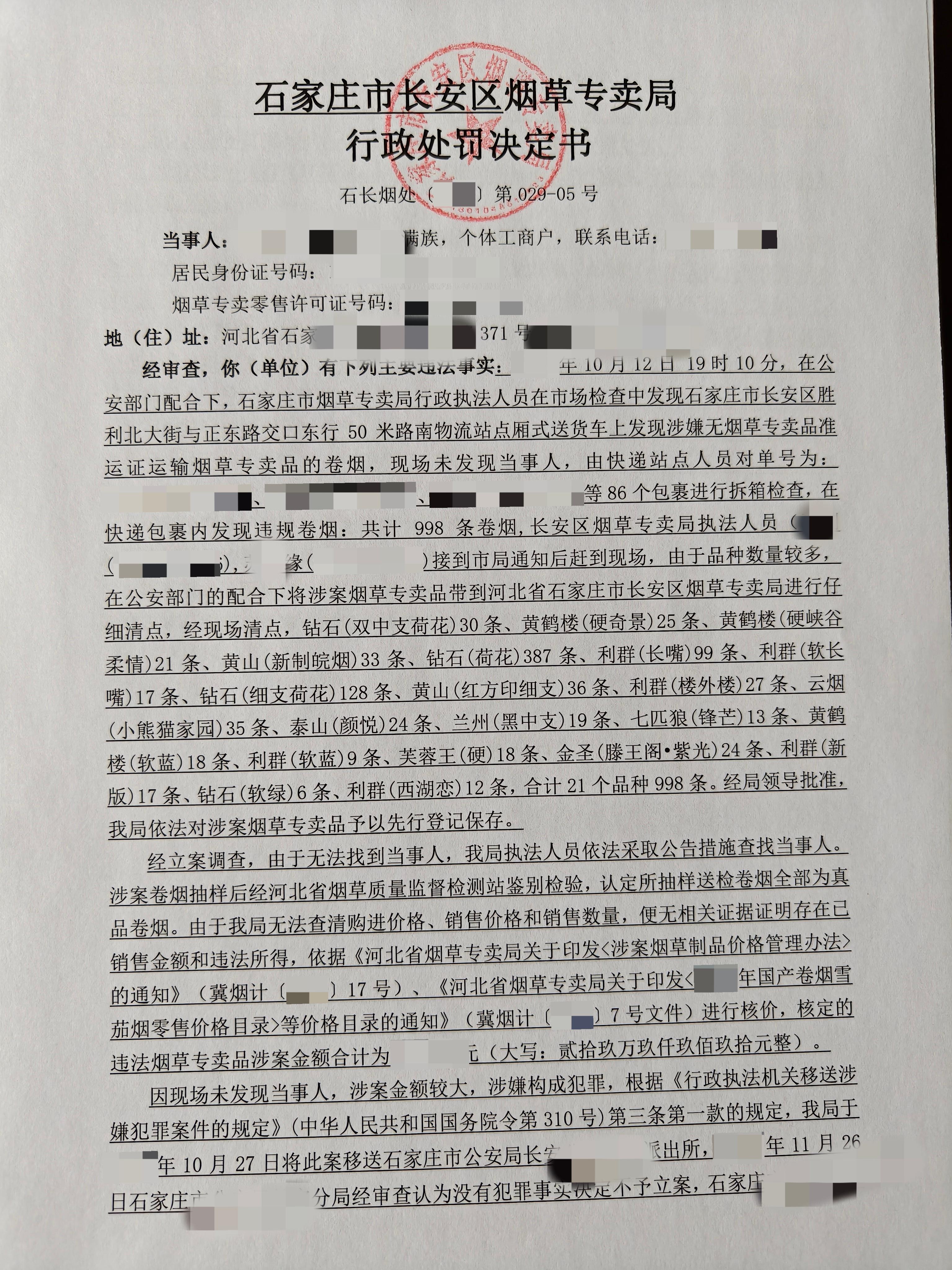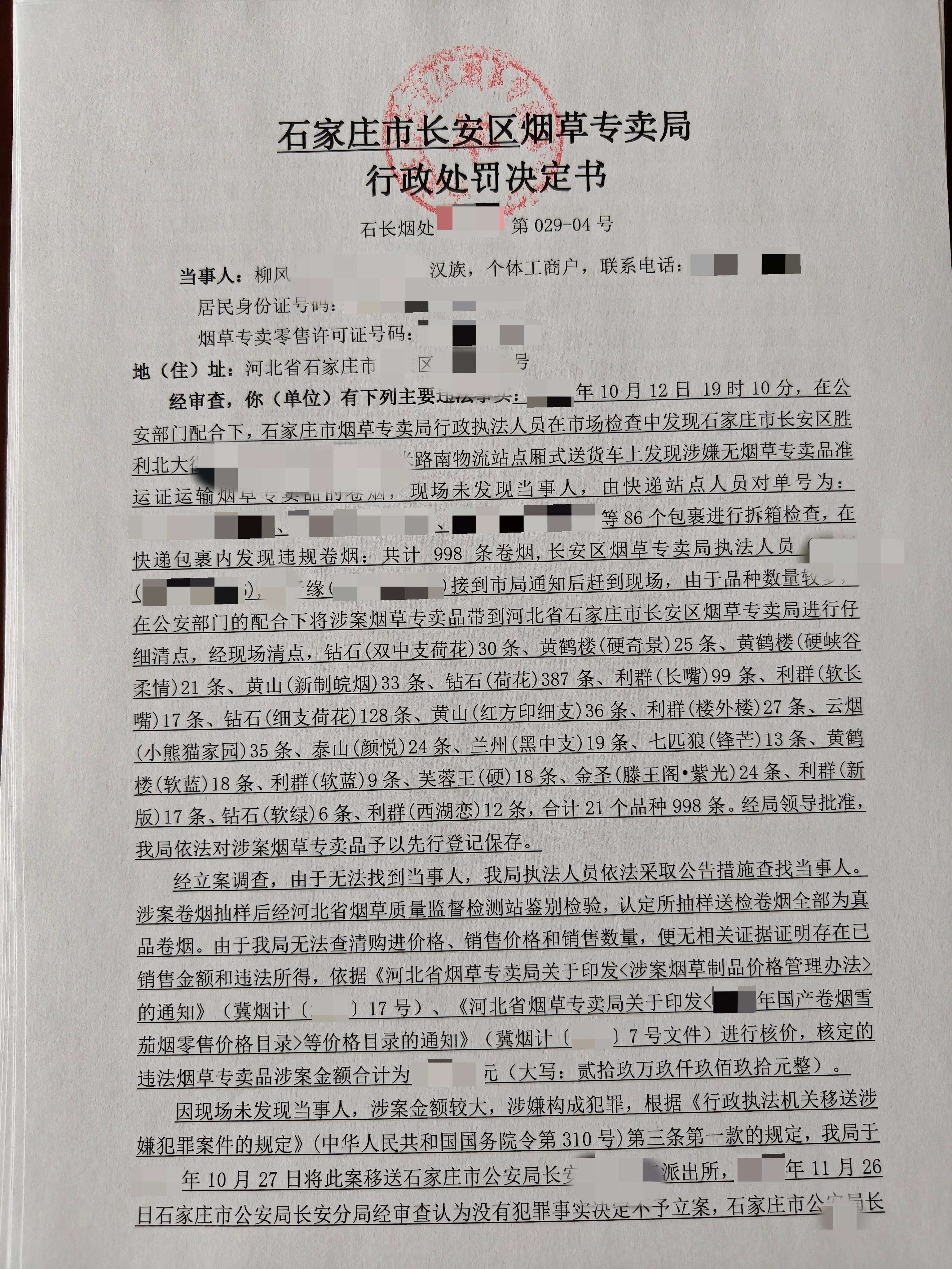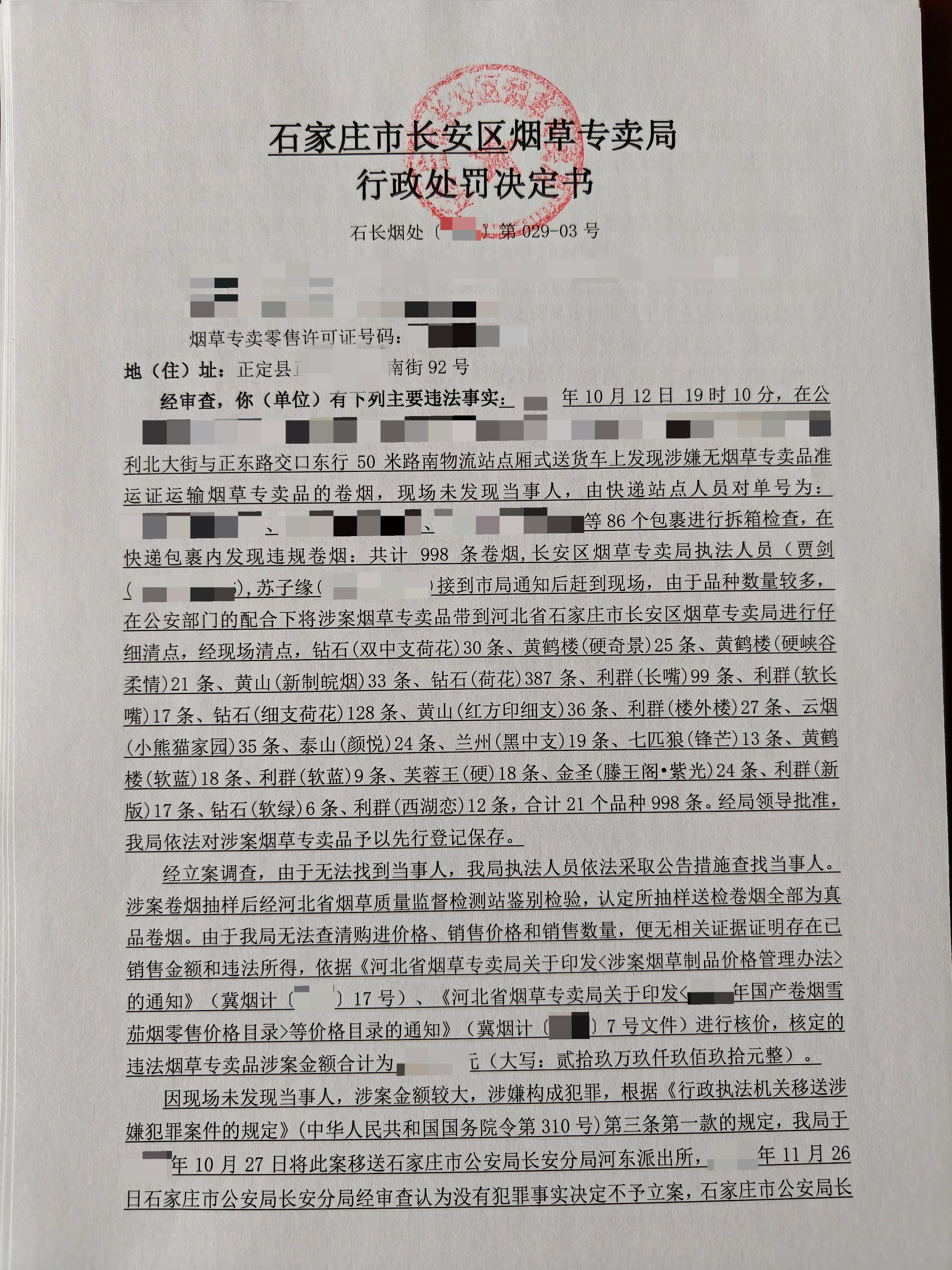 行政处罚决定第029号情况说明