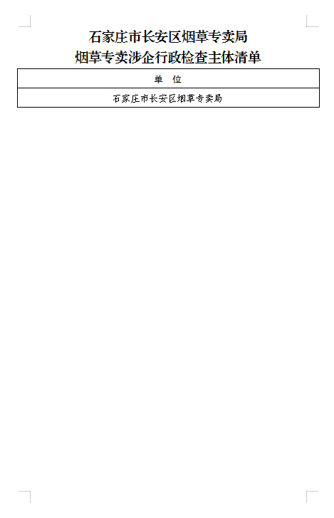石家庄市长安区烟草专卖局烟草专卖涉企行政检查主体清单