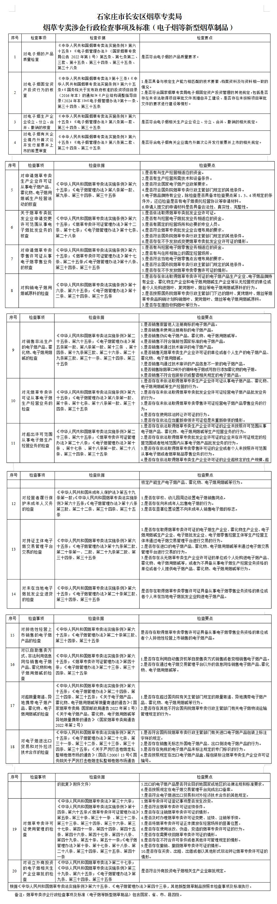 石家庄市长安区烟草专卖局烟草专卖涉企行政检查事项及标准(电子烟等新型烟草制品)