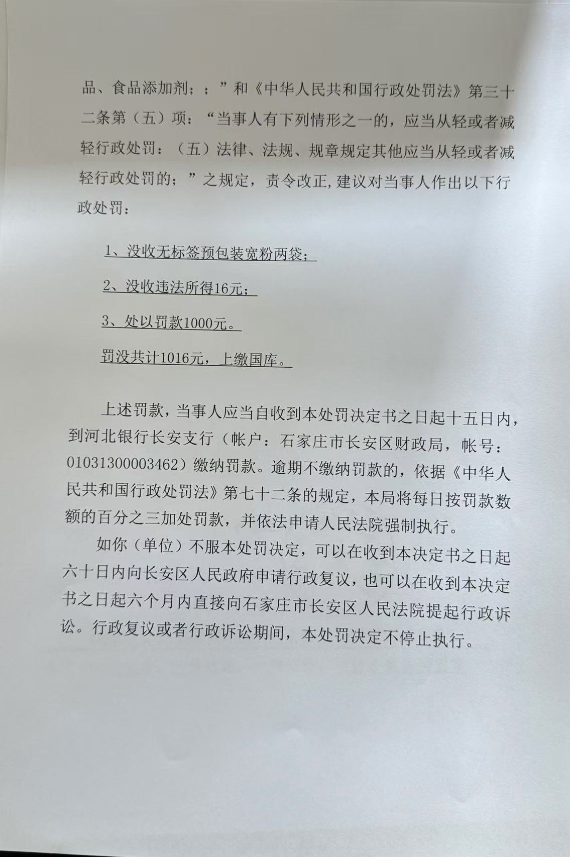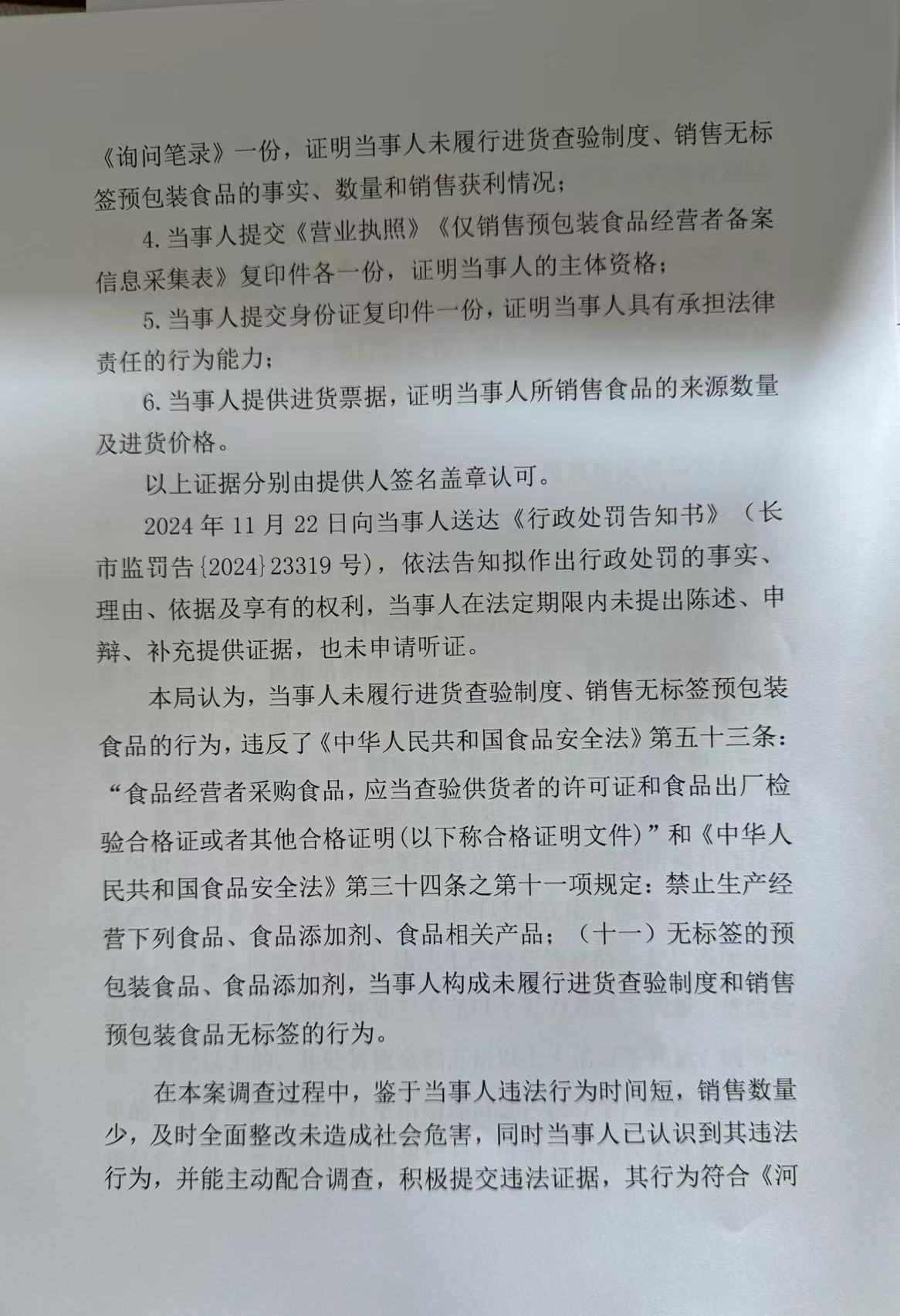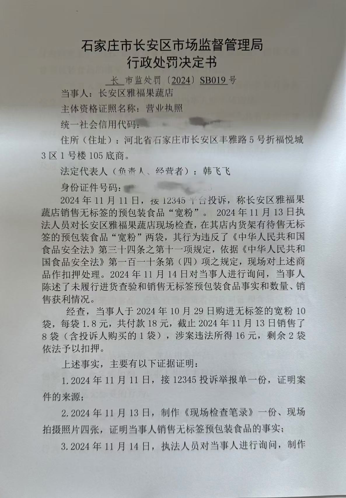 长安区雅福果蔬店(韩飞飞)涉嫌销售无标签预包装食品