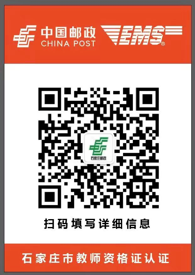 1.关注石家庄邮政官方微信公众号(如图)→2.左下角微寄递→3.教师资格证、体检报告→4.允许河北邮政EMS获取位置→5.教师资格证邮寄→6.位置确定→7.选择审批机构、填写网上报名号、(是否点击读取注册信息)姓名、身份证号、收件人姓名、电话、地址→8.保存并支付→9.申请提交成功。