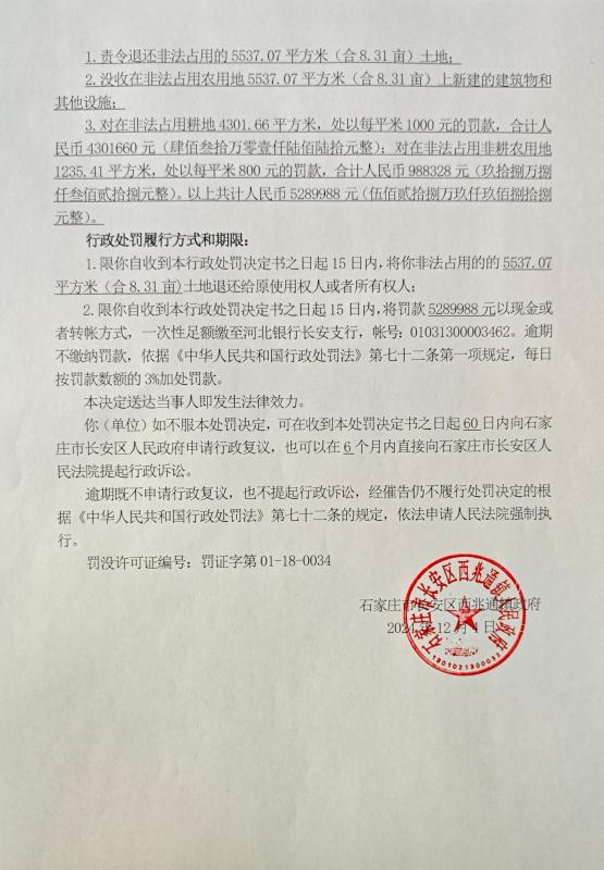 石家庄市城市建设投资控股集团有限公司未经县级以上人民政府批准,在石家庄市长安区西兆通镇西庄村范围内,违法占用西庄村集体土地案