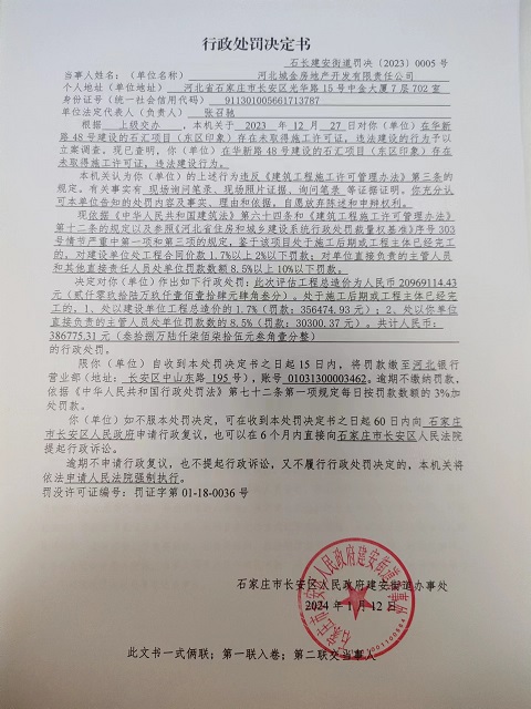 河北城金房地产开发有限责任公司未取得施工许可证案