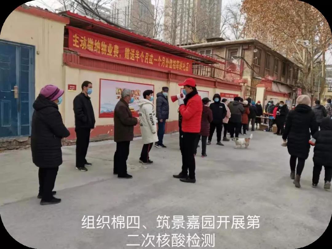 1月9日根据全区安排,到广安街道办事处棉四小区和筑景嘉园社区协助录入核酸检测信息,帮助社区居民买药、送菜等。