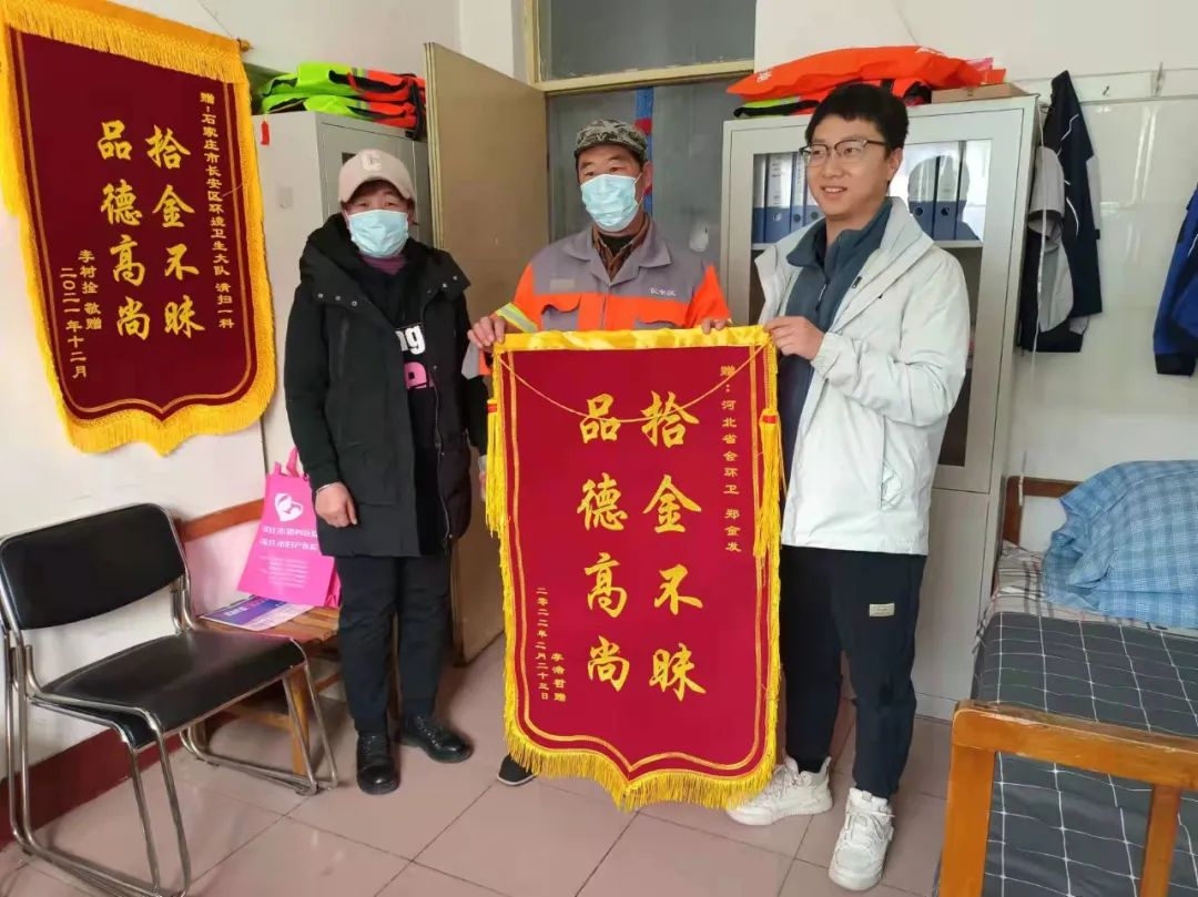 3月6日,失主李先生来到长安环卫大队清扫科办公室,送上了他特意定做的一面印着“品德高尚 拾金不昧”的锦旗,再次对郑师傅拾金不昧的高尚品格表示了感谢。